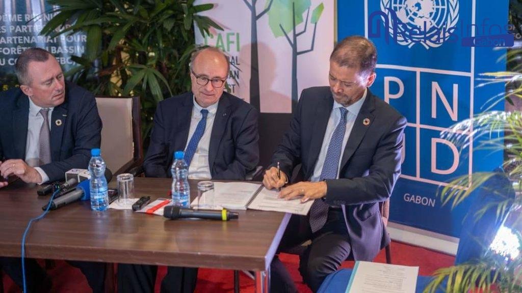 Le 8 juillet dernier, le Gabon via le Ministre des eaux et forêts, le Pr Lee White a procédé à la signature de cinq documents relatifs au 3e cycle de l’Initiative pour la forêt d’Afrique centrale (CAFI). C’était lors de la clôture de la 19e réunion du Partenariat pour les forêts du Bassin du Congo (PFBC). Ces cinq documents vont être financés par les fonds octroyés par la Norvège à travers CAFI au Gabon, pour ses efforts pour la réduction de ses émissions de gaz à effet de serre, dues à la déforestation et à la dégradation des forêts. Ce financement de 150 millions de dollars américains (96 milliards de FCFA) s’étale sur 10 ans et dont le Gabon a reçu un premier versement de 17 millions de dollars (environ 9,3 milliards de FCFA) en 2021.
