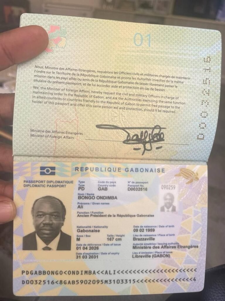 Les documents officiels contredisent clairement cette version : le passeport a été émis le 1er avril 2026 pour une validité de cinq ans, jusqu’au 31 mars 2031, et reconnaît à Ali Bongo son statut d’ancien président.